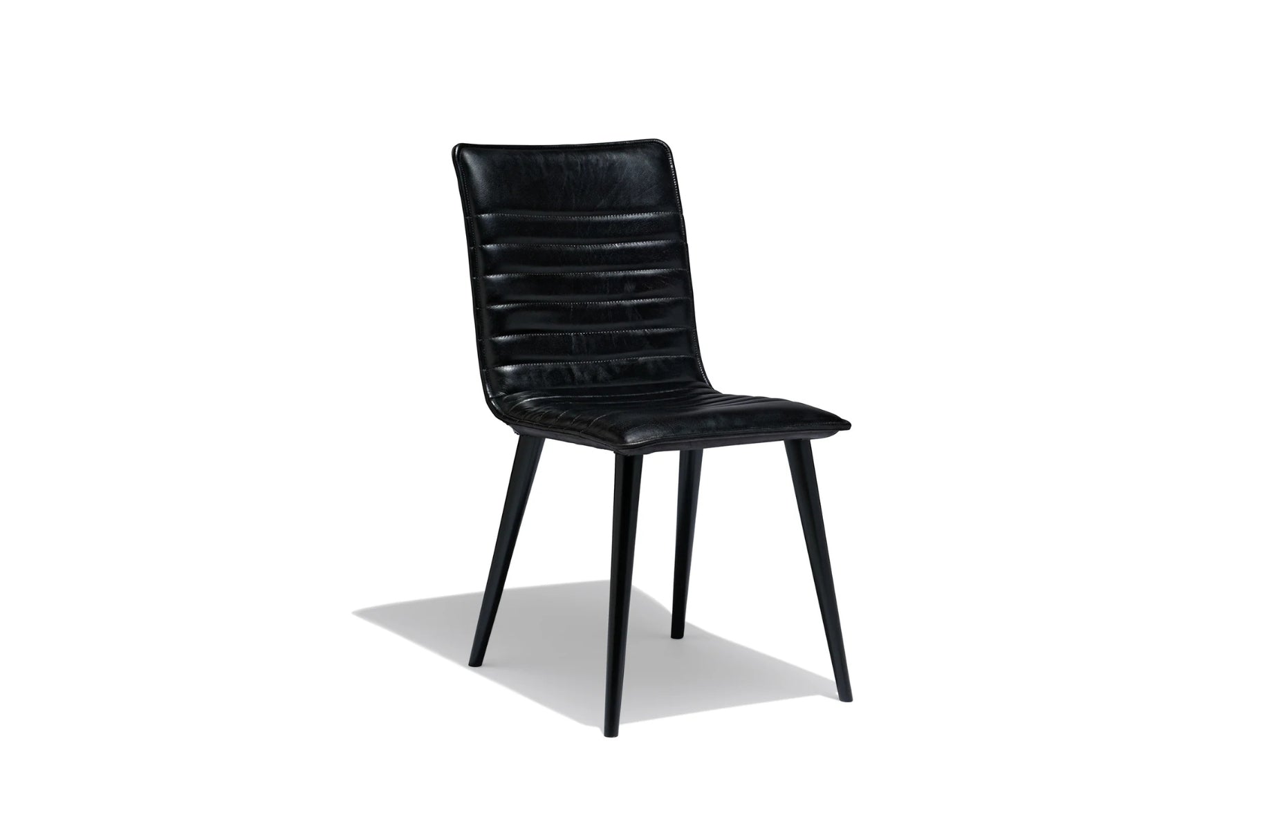 Explore traditional luxury with leather seating. The Ace Side Chair features a channel tufted leather seat and wooden legs, offering a masculine and earthy take on conventional seating. These chairs are a great addition to a petite dining table or office space.
