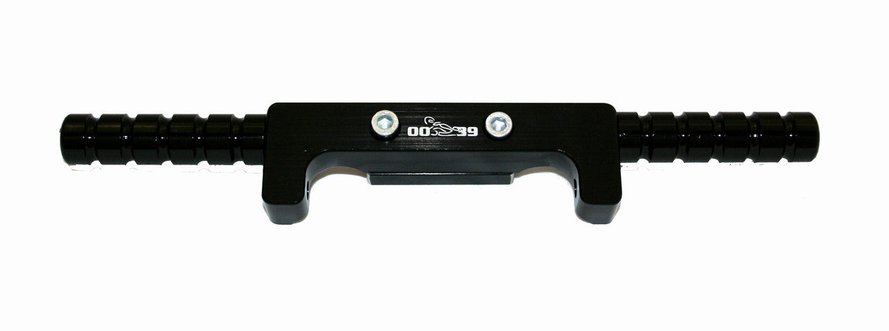 Anodized in black and adjustable to different settings, this footrest encourages manipulation of the pedals and rotation of the ankle, as well as stabilization under braking.