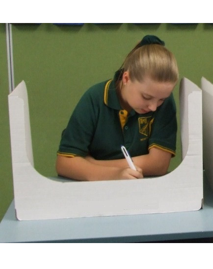 Ideal for creating innavidual workspaces that facilitate observation of students. Help create innavidual and flexible learning spaces within the classroom. Improve student focus by minimising environmental distractions. Cut out allows for observation of student. Provide innavidual testing spaces at a low cost. Folds for easy and compact storage.